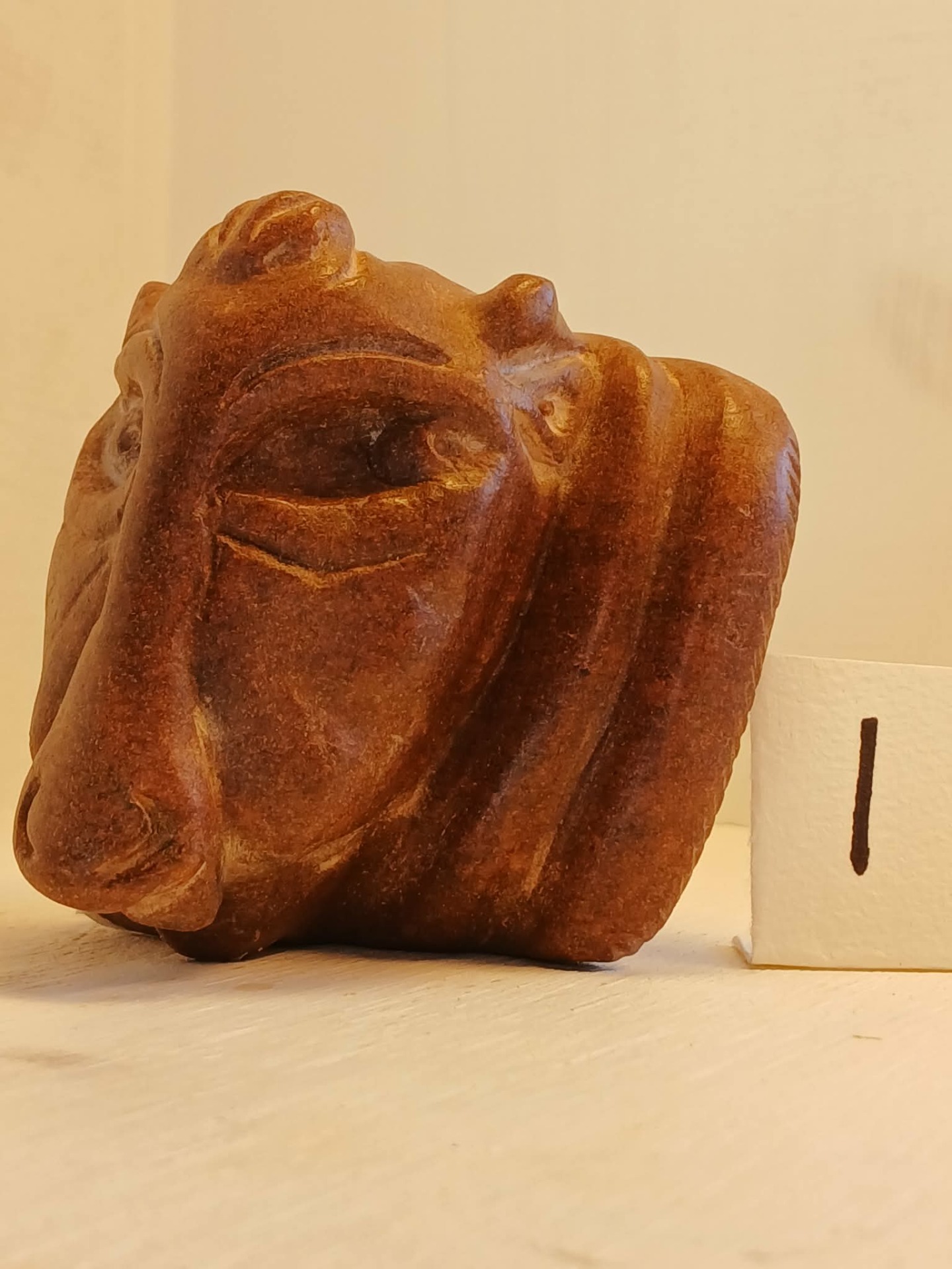 Klebersteinsfigur, 6-8 cm høg, laga av Charlotte Hellum Wedel-Jarlsberg. Figuren er forma frå råstein. Charlotte bruker grove og fine rasper, små knivar og pussepapir, og avsluttar med olje, f.eks flytande bivoks. Ho veit aldri kva eller kven som "bur i steinen". Figuren kan òg leverast montert på jernstake mot eit tillegg i pris. Ta kontakt om du ynskjer montering på stake.