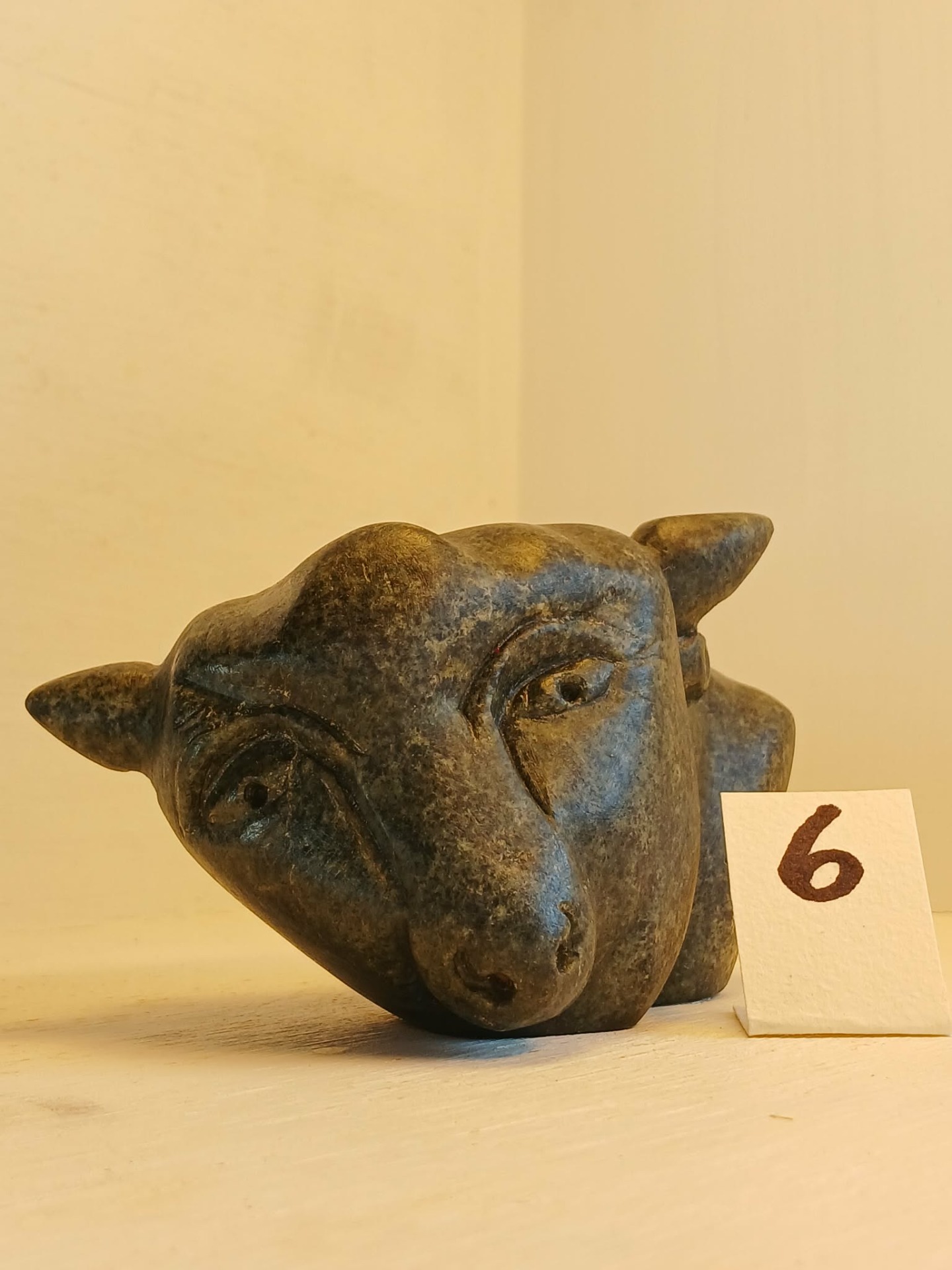 Klebersteinsfigur, 6-8 cm høg, laga av Charlotte Hellum Wedel-Jarlsberg. Figuren er forma frå råstein. Charlotte bruker grove og fine rasper, små knivar og pussepapir, og avsluttar med olje, f.eks flytande bivoks. Ho veit aldri kva eller kven som "bur i steinen". Figuren kan òg leverast montert på jernstake mot eit tillegg i pris. Ta kontakt om du ynskjer montering på stake.