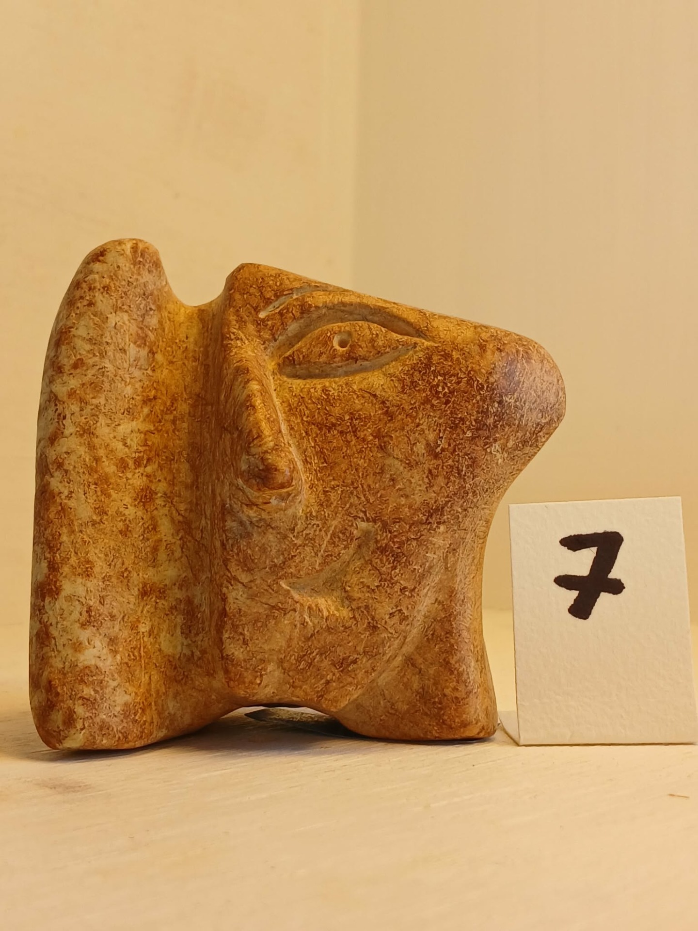 Klebersteinsfigur, 6-8 cm høg, laga av Charlotte Hellum Wedel-Jarlsberg. Figuren er forma frå råstein. Charlotte bruker grove og fine rasper, små knivar og pussepapir, og avsluttar med olje, f.eks flytande bivoks. Ho veit aldri kva eller kven som "bur i steinen". Figuren kan òg leverast montert på jernstake mot eit tillegg i pris. Ta kontakt om du ynskjer montering på stake.